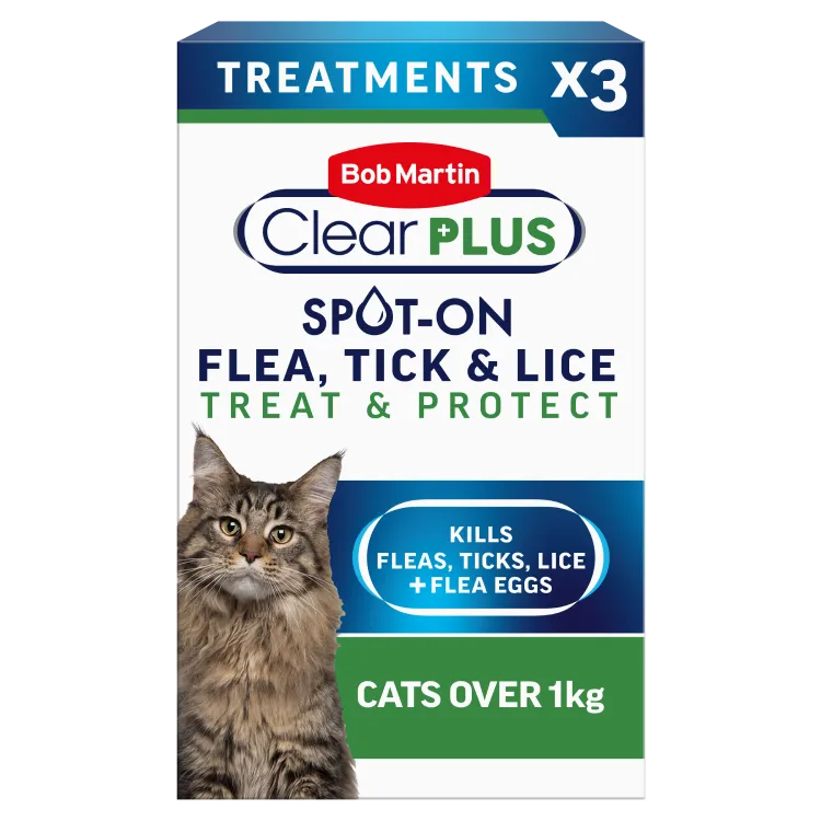 Bob Martin Clear Plus – Flea and Tick Spot-On for Cats and Ferrets can be used on cats over 1kg and over 8 weeks old and on ferrets over 6 months old.